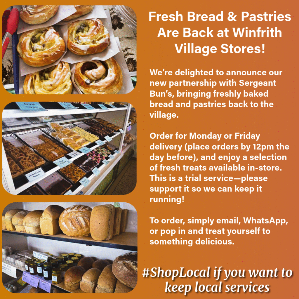 We’re incredibly excited to share that Winfrith Village Stores will once again be offering fresh bread and pastries to our local community!